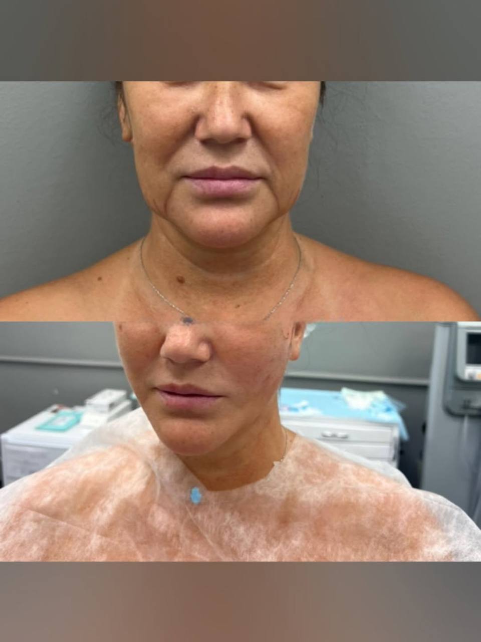 — нижняя треть лица, шея